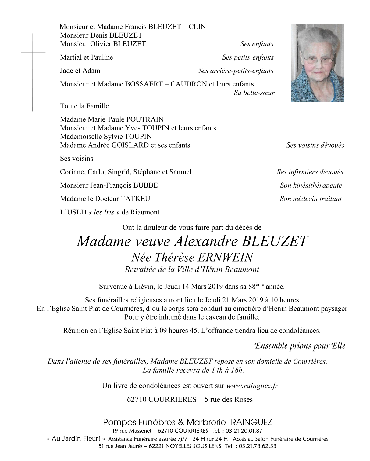 Died in Lievin (62800) on 14 March 2019 at the age of 87 years