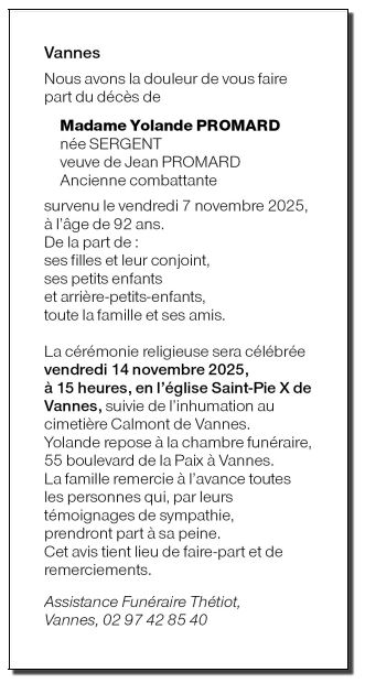 Died in Vannes (56000) on 07 November 2025 at the age of 92 years