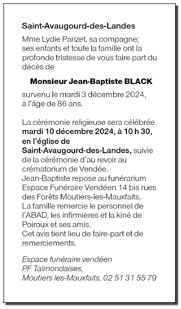 Overleden te Saint-Avaugourd-des-Landes (85540) op dinsdag 3 december 2024 op 86-jarige leeftijd