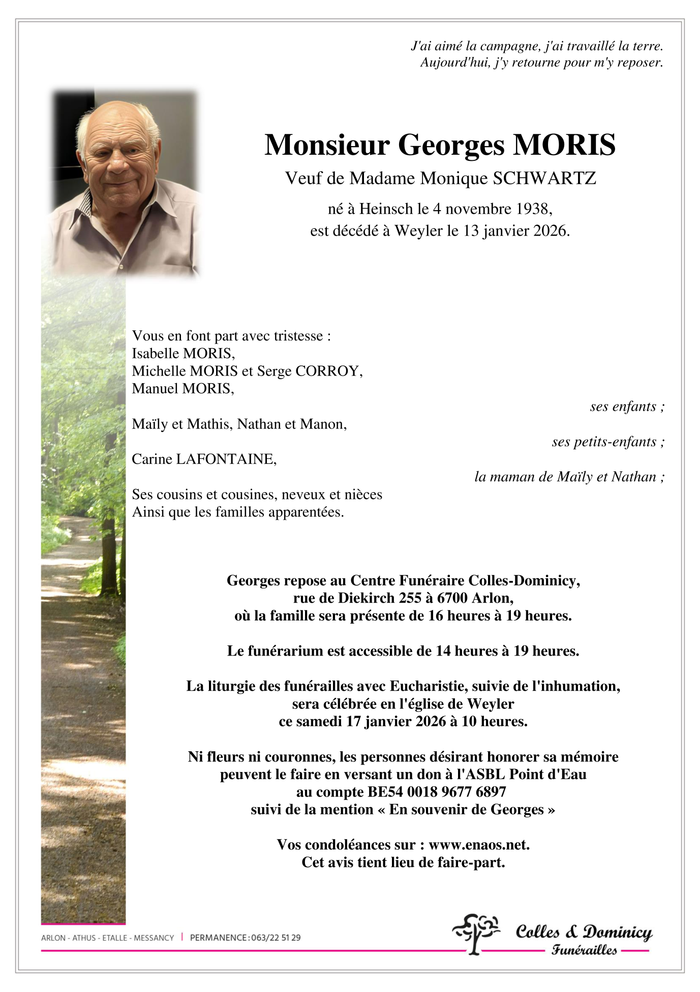 Décédé à Weyler (6700, Belgique) le mardi 13 janvier 2026 à l'âge de 87 ans