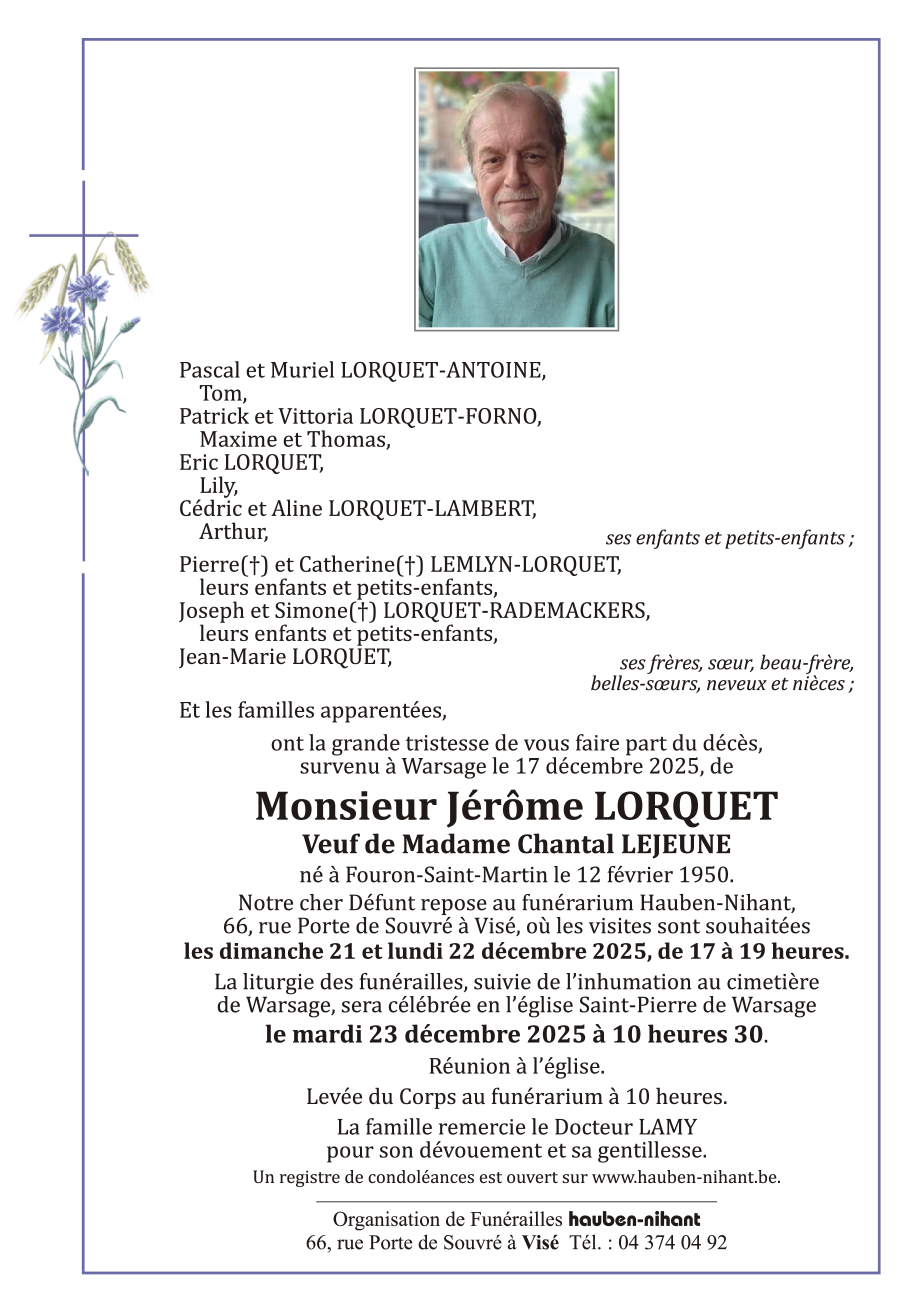 Décédé à Warsage (4608, Belgique) le mercredi 17 décembre 2025 à l'âge de 75 ans