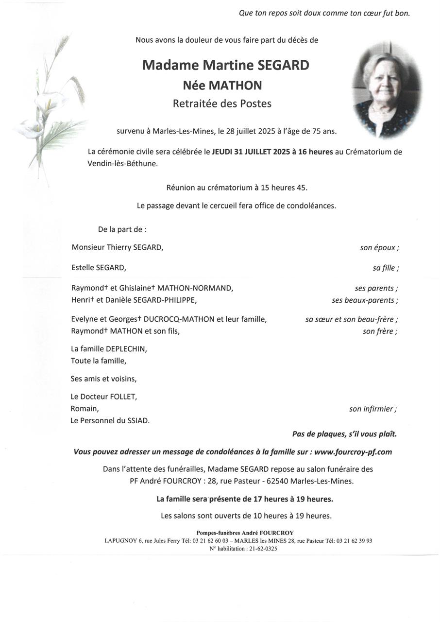 Madame Martine SEGARD née MATHON