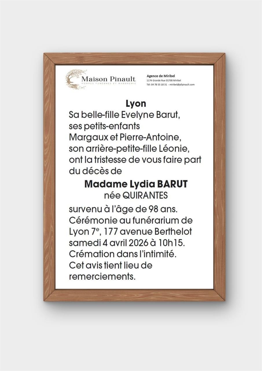 Décédée à Lyon (69001) le mardi 31 mars 2026 à l'âge de 98 ans