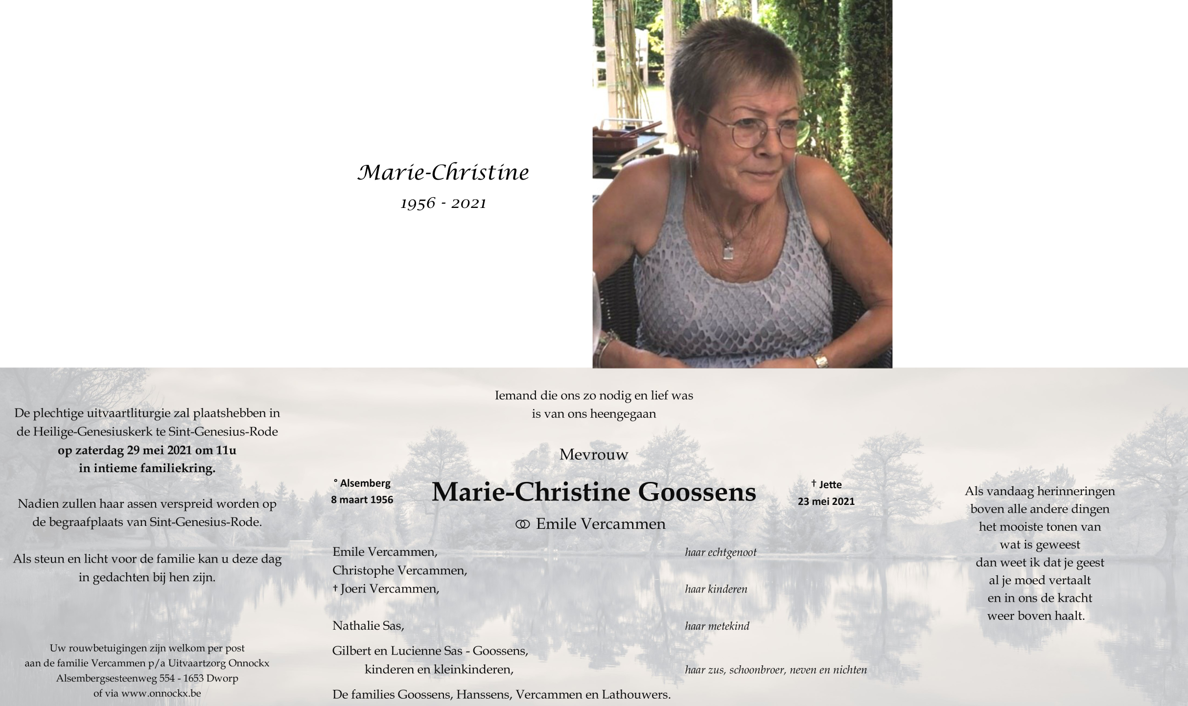 Fallecida en Jette (1090, Bélgica) el domingo, 23 de mayo de 2021 a la edad de 65 años