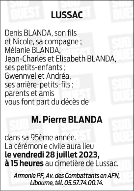 Décédé à Libourne (33500) le lundi 24 juillet 2023 à l'âge de 94 ans