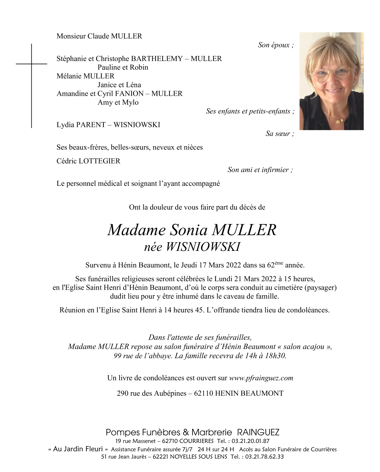 Fallecida en Hénin-Beaumont (62110) el jueves, 17 de marzo de 2022 a la edad de 61 años