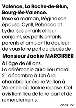 Died in Valence (26000) on 14 December 2021 at the age of 68 years