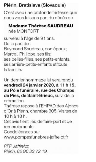Madame Thérèse SAUDREAU née MONFORT