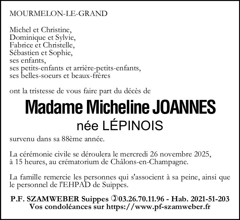 Décédée à Suippes (51600) le samedi 22 novembre 2025 à l'âge de 88 ans