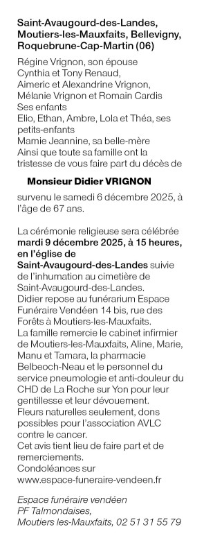 Fallecido en La Roche-sur-Yon (85000) el sábado, 6 de diciembre de 2025 a la edad de 67 años