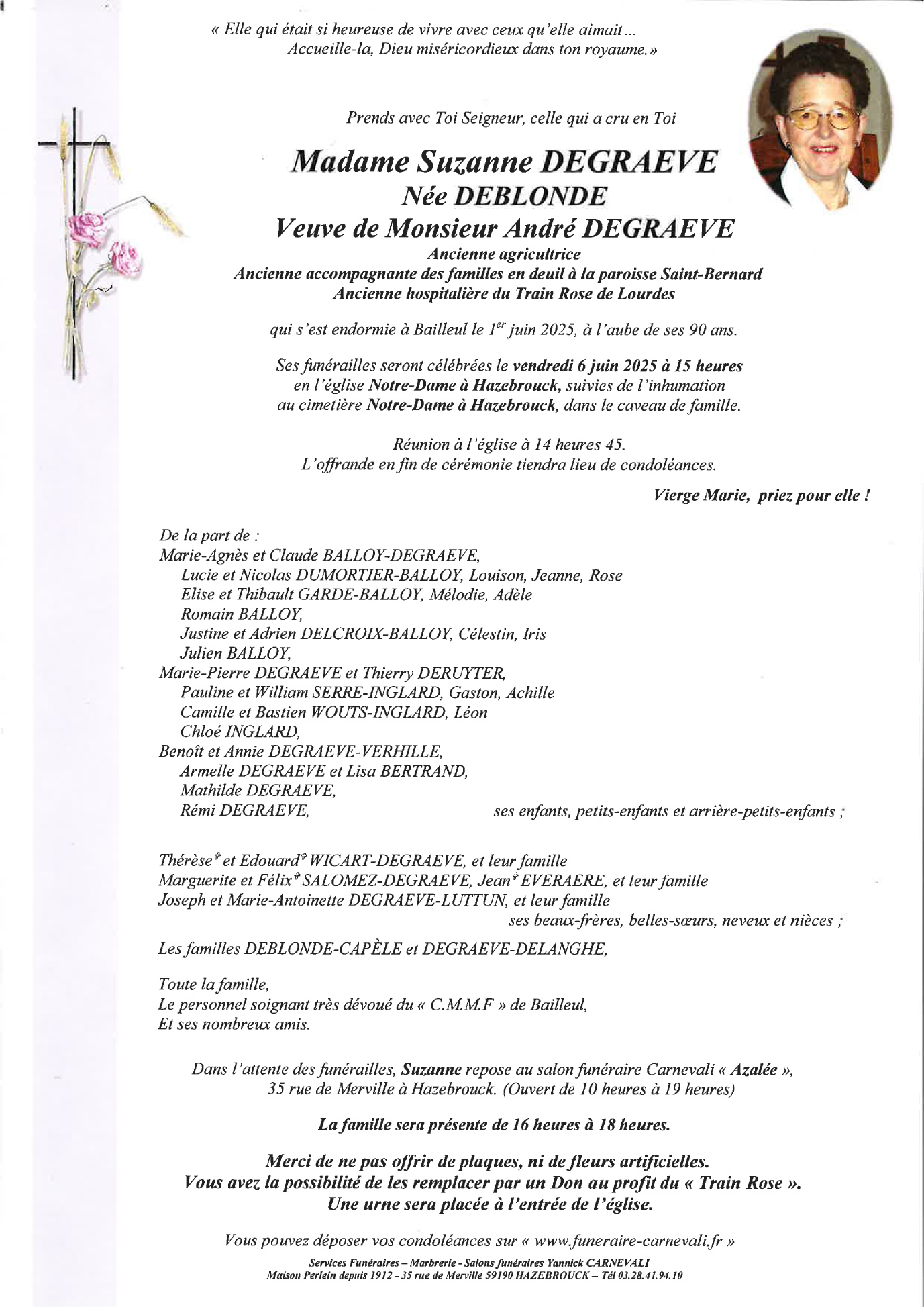 Overleden te Bailleul (59270) op zondag 1 juni 2025 op 89-jarige leeftijd