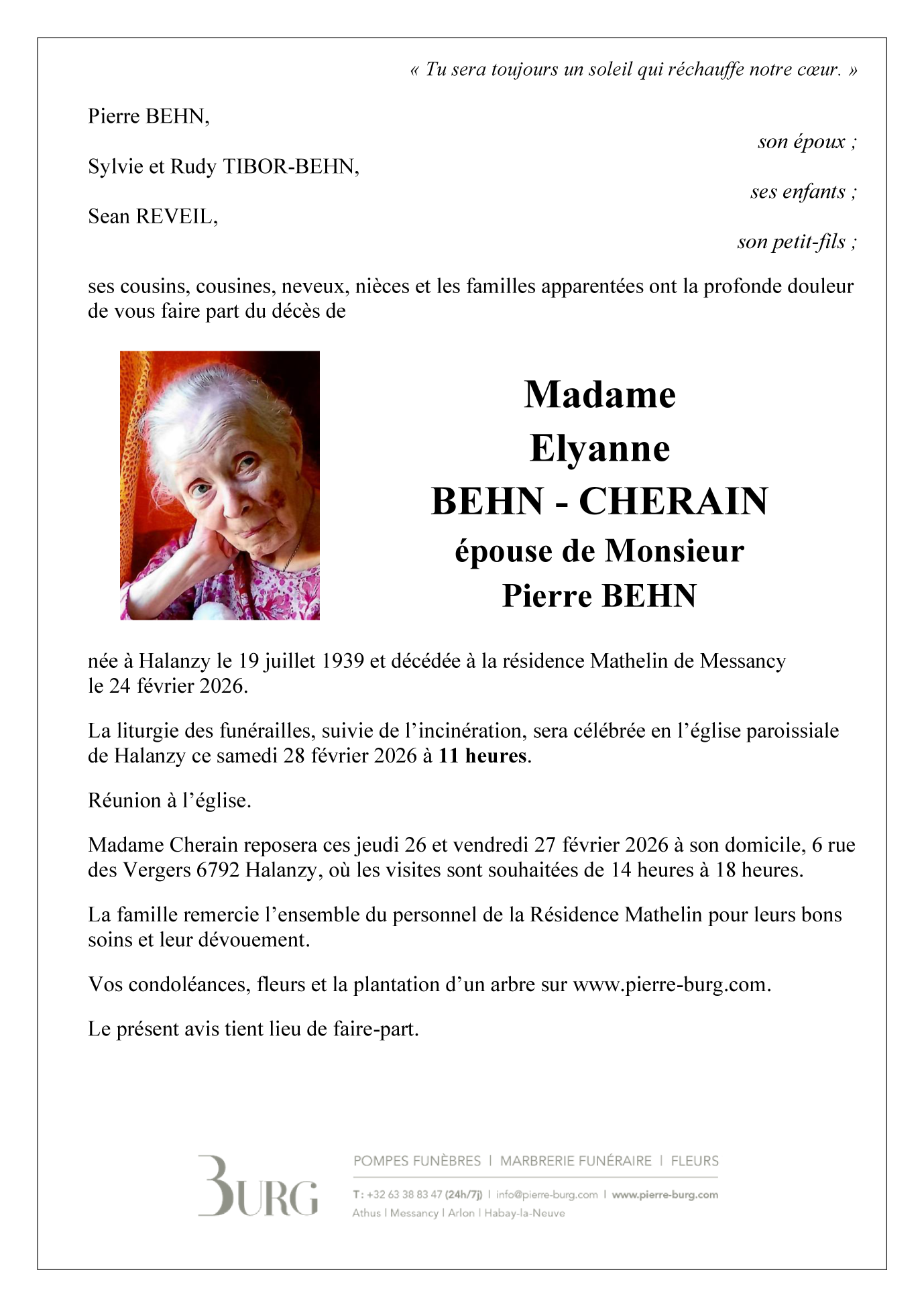 Décédée à Messancy (6780, Belgique) le mardi 24 février 2026 à l'âge de 86 ans