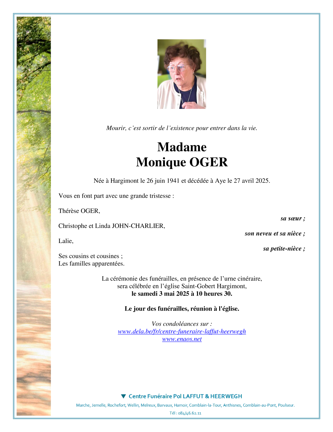Died in Aye (6900, Belgium) on 27 April 2025 at the age of 83 years