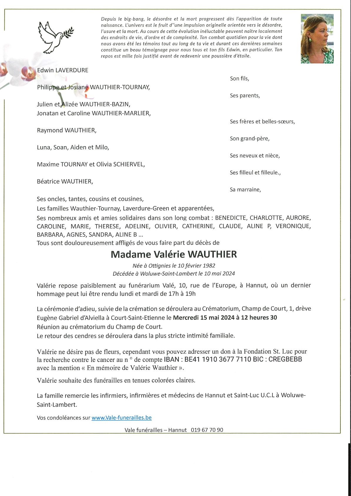 Décédée à Woluwe-Saint-Lambert (1200, Belgique) le vendredi 10 mai 2024 à l'âge de 42 ans