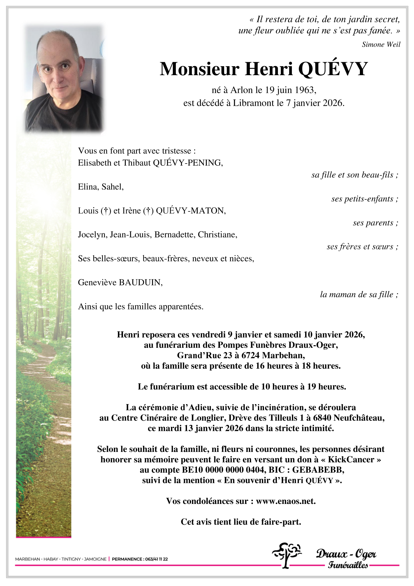 Died in Libramont-Chevigny (6800, Belgium) on 07 January 2026 at the age of 62 years