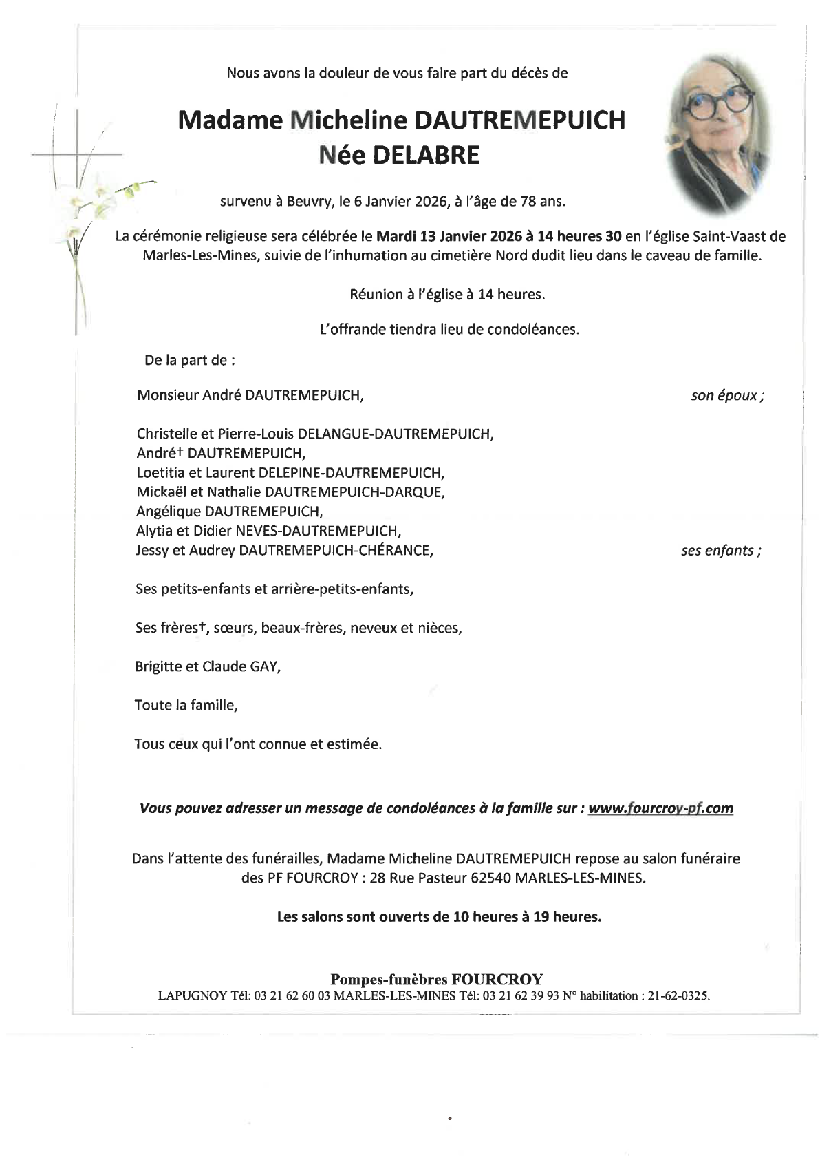 Died in Beuvry (62660) on 06 January 2026 at the age of 78 years