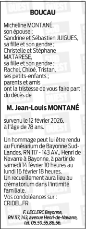 Décédé à Bayonne (64100) le jeudi 12 février 2026 à l'âge de 78 ans