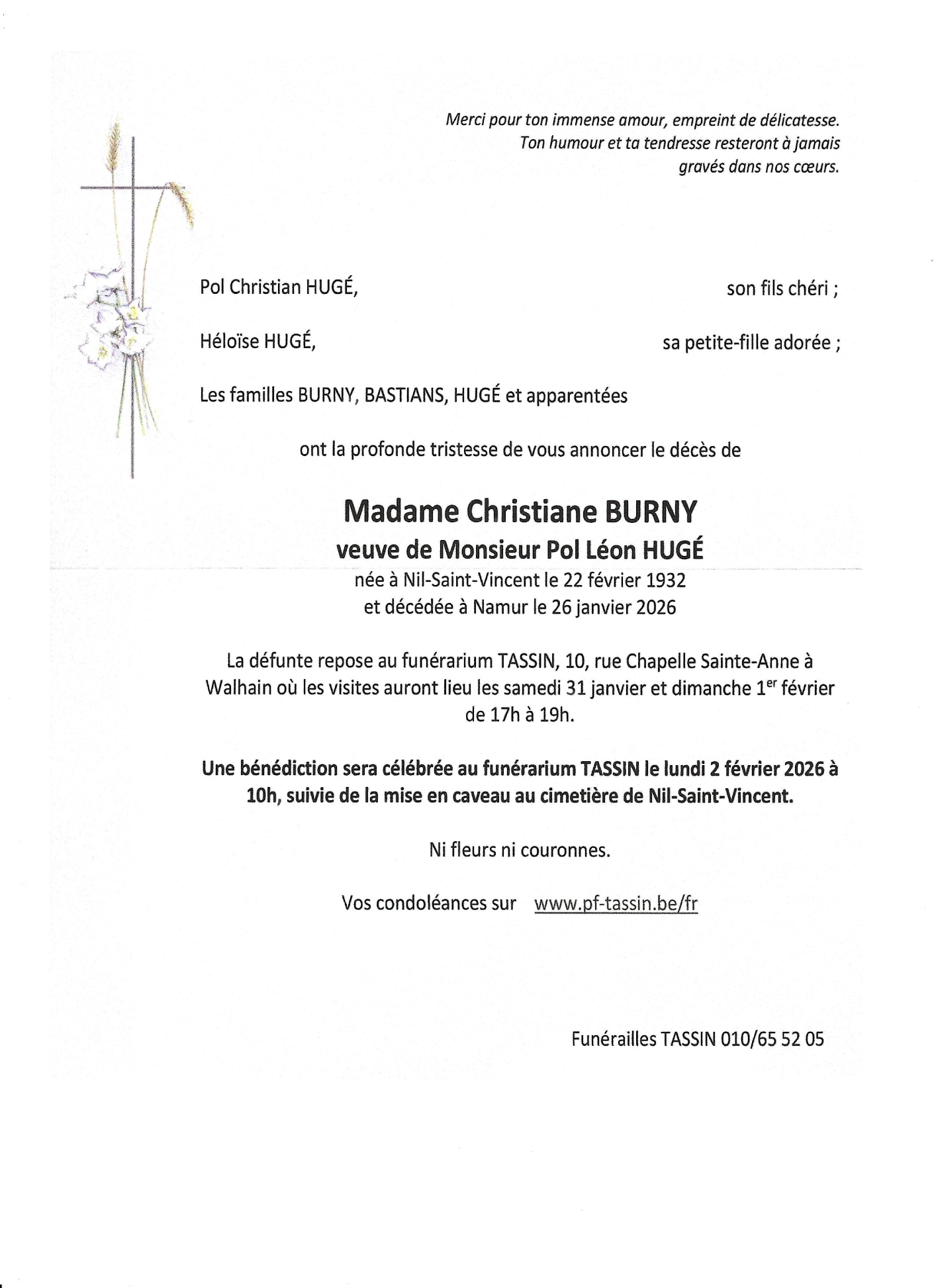 Fallecida en Namur (5000, Bélgica) el lunes, 26 de enero de 2026 a la edad de 93 años