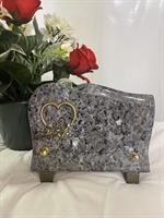 Plaque en granit avec cœur en bronze. PHOTO NON CONTRACTUELLE