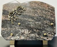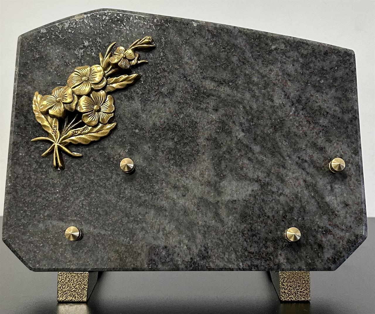 | Plaque granit Plaque granit 16x21cm avec bronze fleurs.