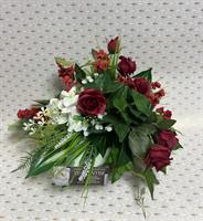 | Gerbe de fleurs naturelles Composition en fleurs naturelle en forme de cousin carré ( 50 cm), avec soit une dominante de Rouge, ou Rose, ou Blanc, merci de nous préciser