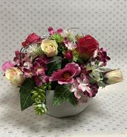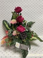 | Coupe de fleurs naturelles Composition en fleurs naturelle en forme de barque ( 50-60 cm), avec soit une dominante de Rouge, ou Rose, ou Blanc, merci de nous préciser