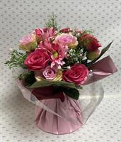 | Coupe de fleurs naturelles Composition en fleurs naturelle en forme de coeur ( 40 cm), avec soit une dominante de Rouge, ou Rose, ou Blanc, merci de nous préciser