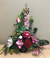 Bouquet lesté pour éviter la prise au vent Fleurs roses Hauteur pot + fleurs 50cm
