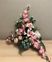 Coupe rose lestée Hauteur pot + fleurs 50 cm Lys Roses roses Renoncules....