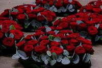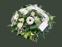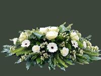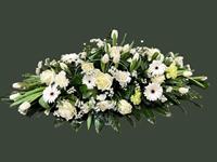 Montage mortuaire de grande taille composé uniquement de fleurs blanche.