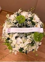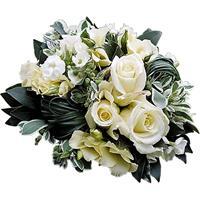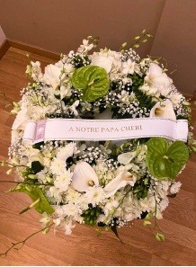 Photo non contractuelle | Couronne blanche Couronne blanche à plat de fleurs de saison avec feuillage / Diamètre 60 cm - Photo non contractuelle
