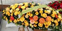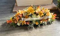 Photo non contractuelle | Dessus de cercueil coloré Dessus de cercueil coloré avec feuillage et fleurs de saison / Longueur 120 cm - Photo non contractuelle