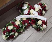 Photo non contractuelle | Croix rouge et blanche Croix colorée de fleurs de saison avec feuillage / Longueur 100 cm - Photo non contractuelle
