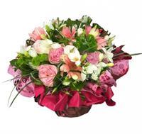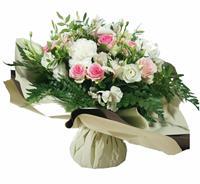Photo non contractuelle | Bouquet rond en camaïeu pastel Bouquet rond "bulle d'eau" en camaïeu pastel de fleurs de saison avec feuillage / Diamètre 35 cm - Photo non contractuelle