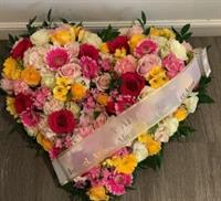 Photo non contractuelle | Cœur multi fleurs coloré Cœur multi fleurs coloré avec feuillage et fleurs de saison / Diamètre 45cm - Photo non contractuelle