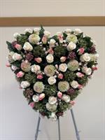 niet-contractuele foto | Coeur floral en soie - Pivoines et hortensias Superbe composition en fleurs artificielles de haute qualité, réalisée en forme de cœur pour symboliser l’amour et le souvenir éternel.