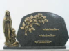 | Plaque sur base avec statue Plaque sur base avec statue "Vierge de Lourdes" et motif bronze "Branche de roses"