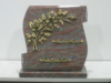 | plaque sur base arrondie Plaque sur base arrondie avec dépoli blanc et motif bronze "blé et maïs"