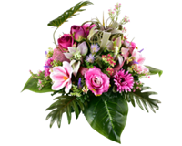 | Dessus de cercueil rose Dessus de cercueil avec roses, lys, cymbidiums et hortensias - Dimensions : 152 x 52 cm - Tonalité Rose - Possibilité de rajouter option ruban (texte à préciser lors de la commande) -