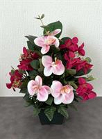 Composition de fleurs tergal dans un pot lesté avec des orchidées. Dim : 42cm de hauteur : 32cm de large. ATTENTION : COMMANDE AU PLUS TARD LE SAMEDI JUSQU'A MIDI POUR LES OBSEQUES QUI ONT LIEU LE LUNDI. Nos articles en ligne sont exclusivement disponibles pour les funérailles que nous organisons. Aucun envoi par colis n'est proposé.