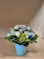 Fleur artificiel blanc et bleu en pot