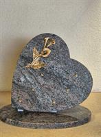 Plaque granit gris en forme de coeur motif fleurs
