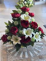 Dans ces moments de profonde tristesse, ce panier de fleurs artificielles a été conçu pour transmettre vos pensées les plus sincères et honorer avec douceur la mémoire d'un être cher.
