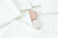 Wabimento vervaardigde deze keitjes handmatig. Elk keitje is voorzien van het woord 'hou-vast' of 'geliefd'. Je kan de keitjes makkelijk bij je dragen en aanraken op moeilijke momenten. Laat ze door je vingers glijden, leg ze op een herinneringsplek, deel ze uit.