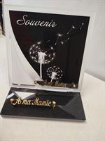 Plaque funéraire en altuglace . Ciel et colombe. Socle en granit noir. Jusqu’à 2 inters de base en bronze possible. Choix à nous communiquer dans la commande dans le champs : "Votre texte à imprimer sur l'article funéraire".