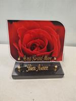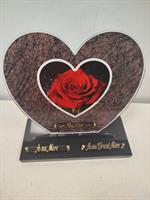 Plaque funéraire en altuglace , rose rouge. Socle en granit noir. Jusqu’à 2 inters de base en bronze possible. Choix à nous communiquer dans la commande dans le champs : "Votre texte à imprimer sur l'article funéraire".
