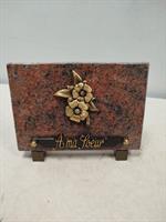 Plaque funéraire en altuglace, socle en granit. Thème coquelicot. Dimension : 30x23 cm Jusqu’à 3 inters de base en bronze possible. Choix à nous communiquer dans la commande dans le champs : "Votre texte à imprimer sur l'article funéraire" accompagné d'un message si vous souhaitez.