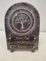 Plaque funéraire en granit avec arbre de vie. Jusqu’à 2 inters de base en bronze possible. Choix à nous communiquer dans la commande dans le champs : "Votre texte à imprimer sur l'article funéraire".