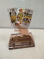 Plaque funéraire en altuglace jeux de cartes. Dimension : 30 x20cm. 2 inters en bronze au choix à nous communiquer au moment de la commande dans le champs : "Votre texte à imprimer sur l'article funéraire" accompagné d'un message si vous souhaitez.