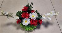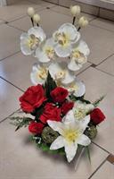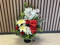 Photo non contractuelleGerbe en pot en fleurs de soie blanche et rouge (convient pour vase en granit)
